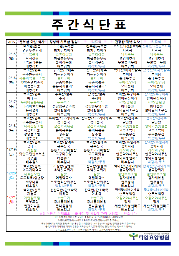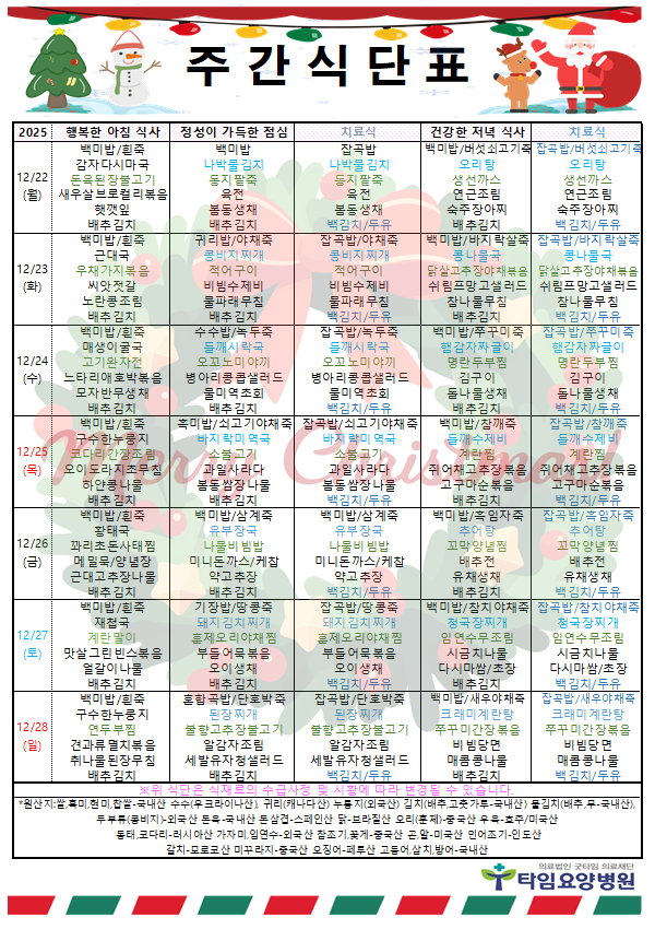 12¿ù 2°ÁÖ ÁÖ°£½Ä´ÜÇ¥