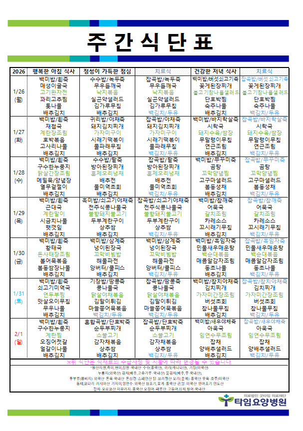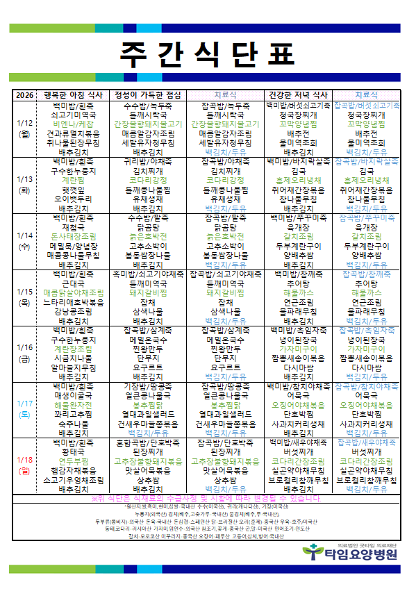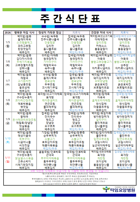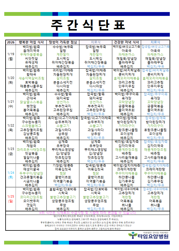 1¿ù 2°ÁÖ ÁÖ°£½Ä´ÜÇ¥