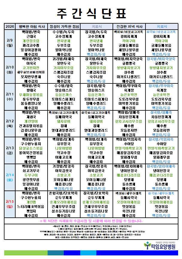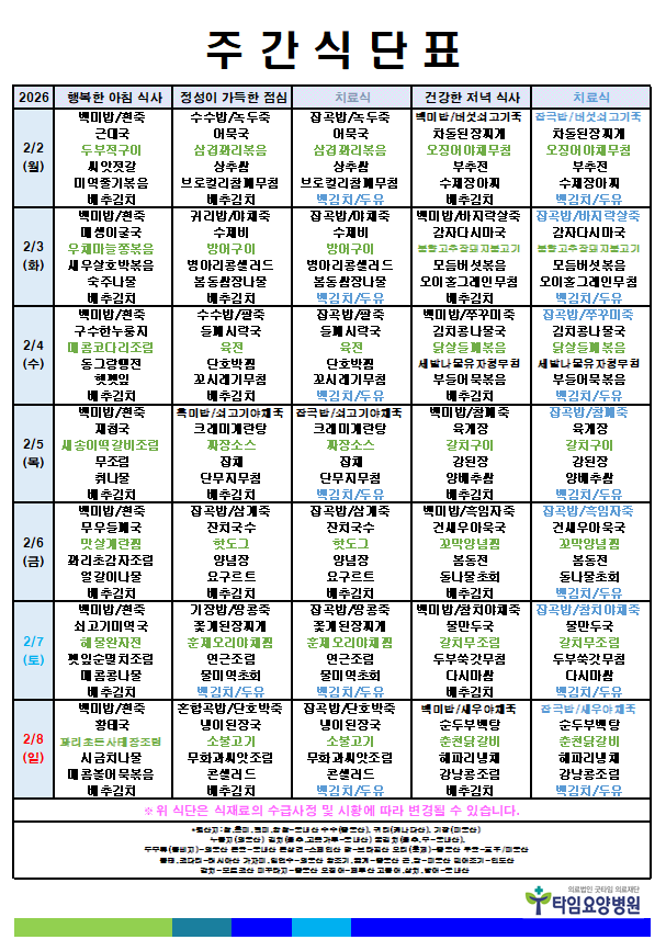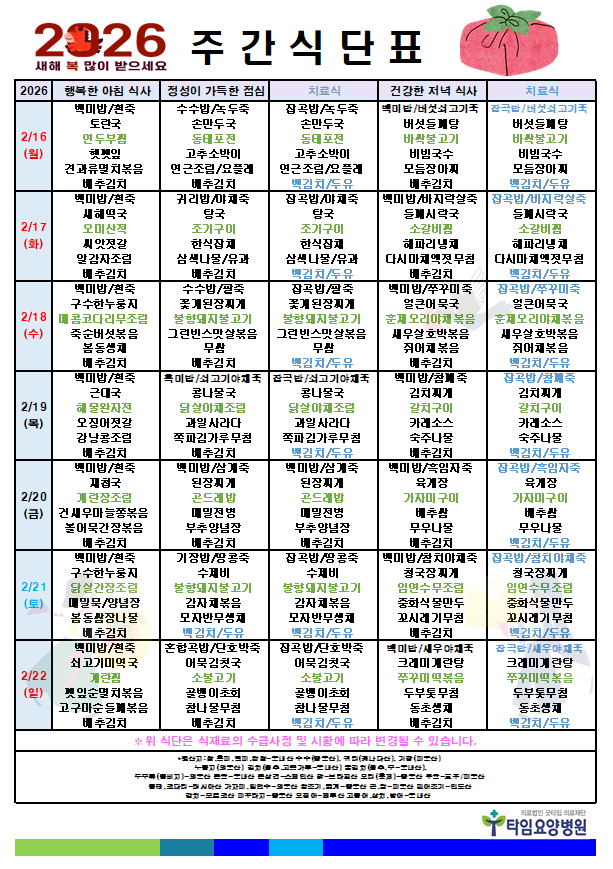 2¿ù 2°ÁÖ ÁÖ°£½Ä´ÜÇ¥