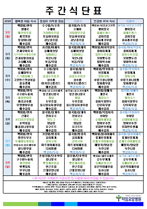 2¿ù 3°ÁÖ ÁÖ°£½Ä´ÜÇ¥